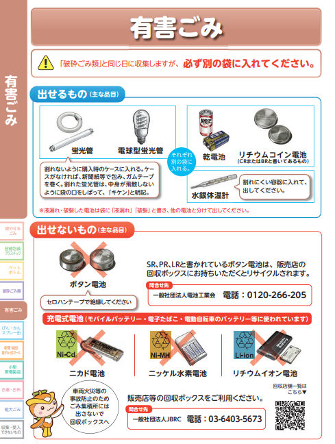 特に、ゴミに出すときには販売店等の回収ボックスに入れ、ごみ集積場には出さないようご注意ください!!