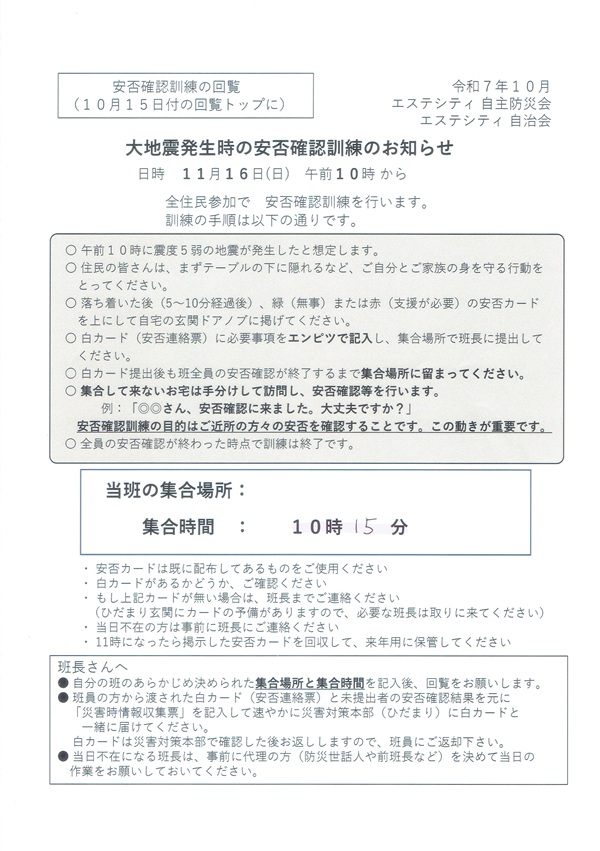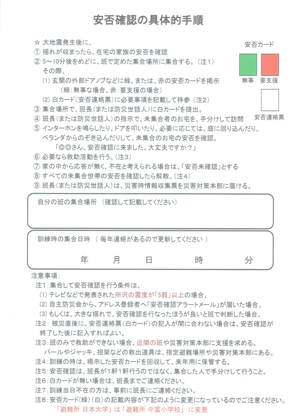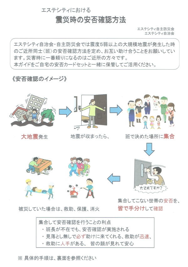 - 災害時の防災組織行動のあり方の検討、防災備蓄品の保管場所の周知など、自主防災会とともに速やかで円滑な行動がなされるよう協力支援