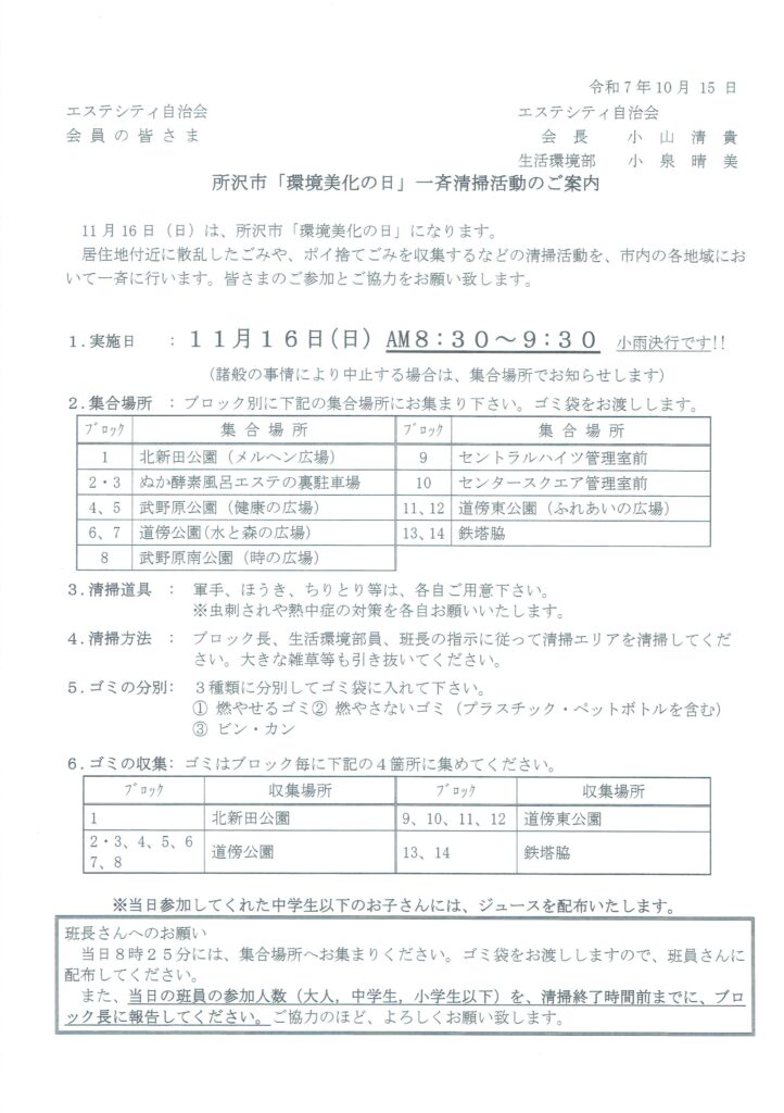 ・エステシティの安心・安全な街づくり一環として「倒木・街路樹虫食い、伐採あと修復」などについて市役所担当との連絡・調整