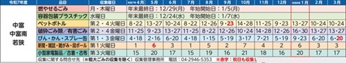 令和7年度 ごみ収集日程表