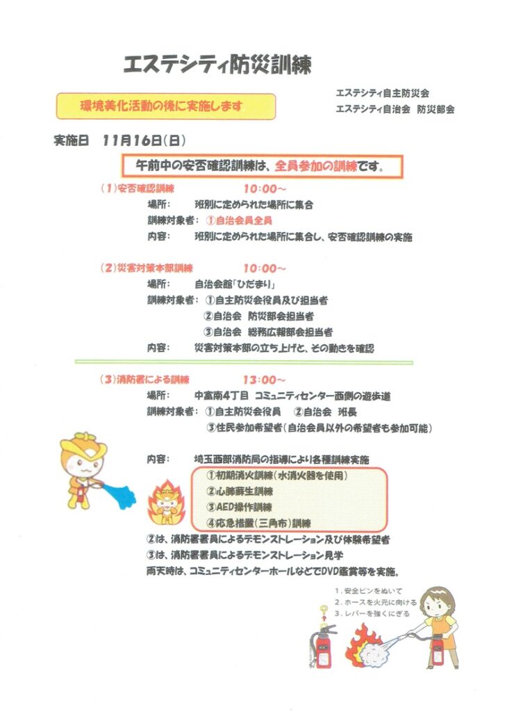 ・自主防災会が実施する防災訓練の一環として、消防署指導による訓練の企画、実行