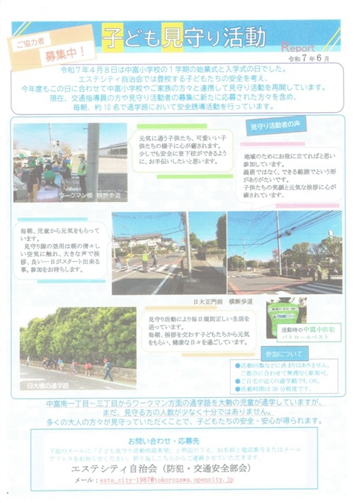・防犯や交通安全に関する活動(講習会開催、子供見守り活動など)の企画、実行
